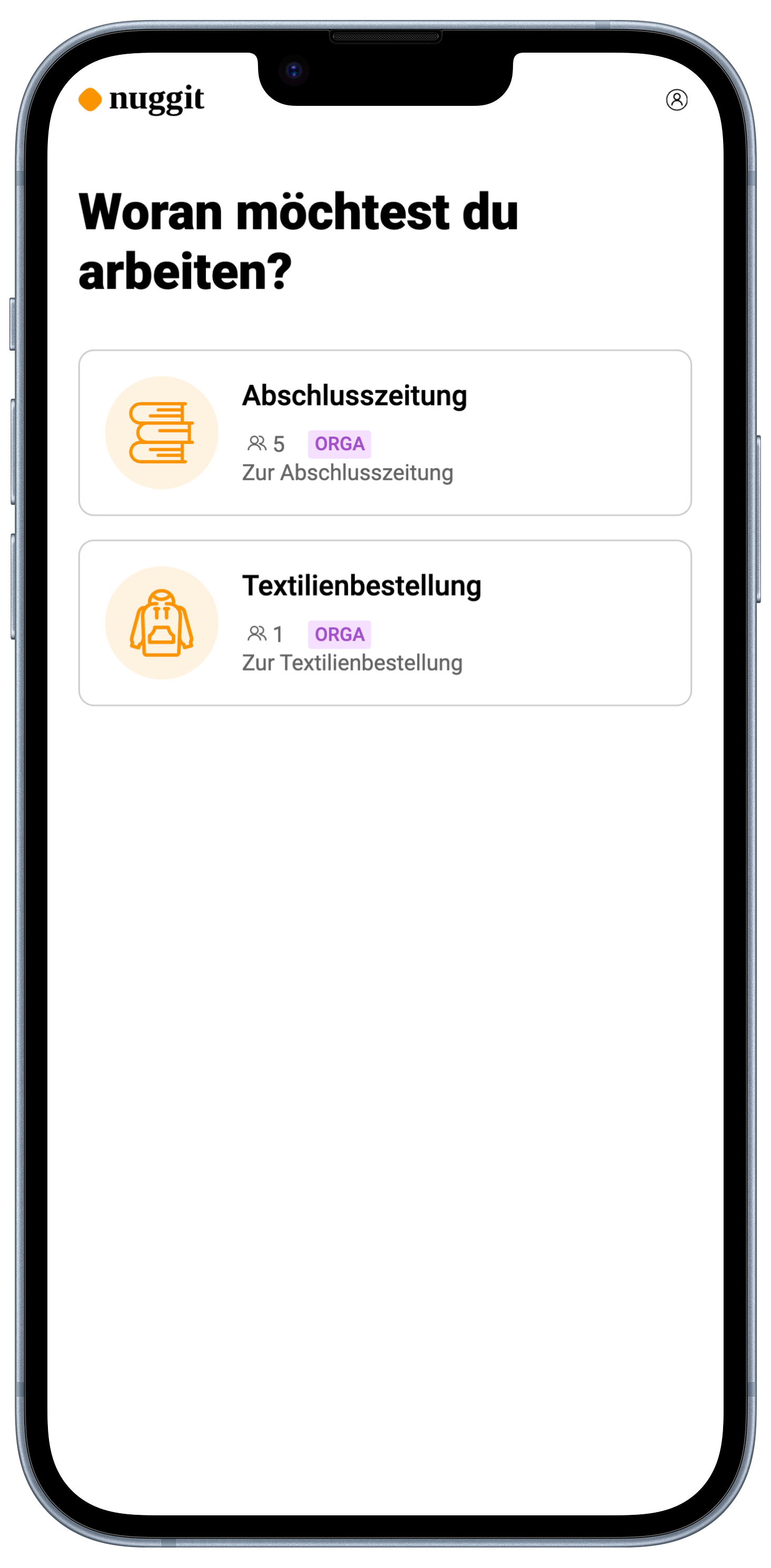 Hier kann zwischen der Abibücher- und Textilapp wechselt werden.