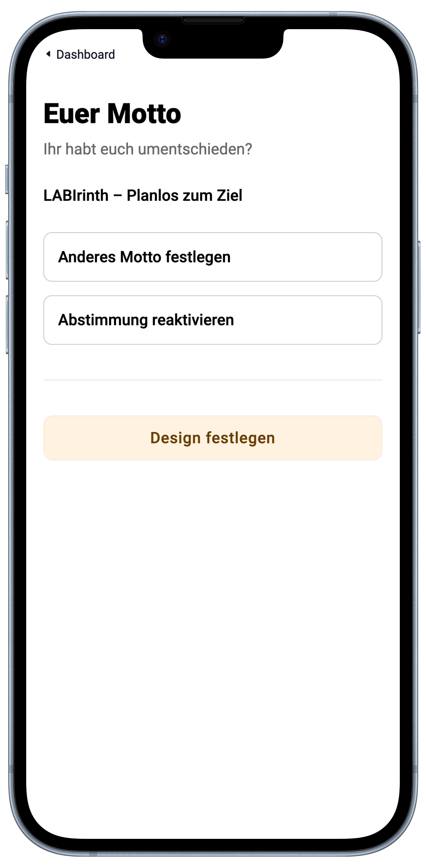 Das Motto wurde ausgewählt und kann hier nochmal geändert werden.