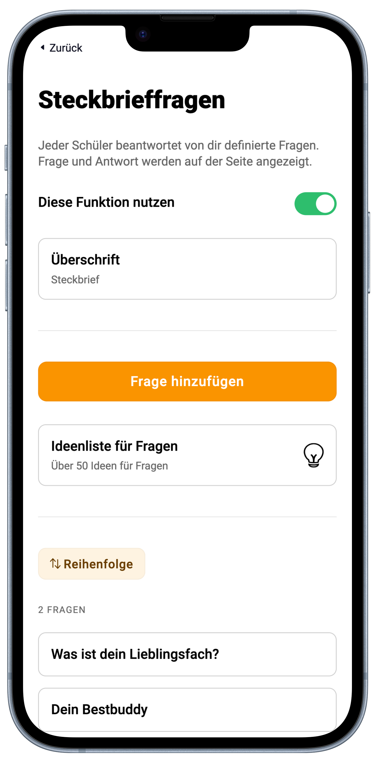 Sobald es mehr als eine Frage gibt, kann auch die Reihenfolge angepasst werden. Dies ist über den Button “Reihenfolge” möglich.