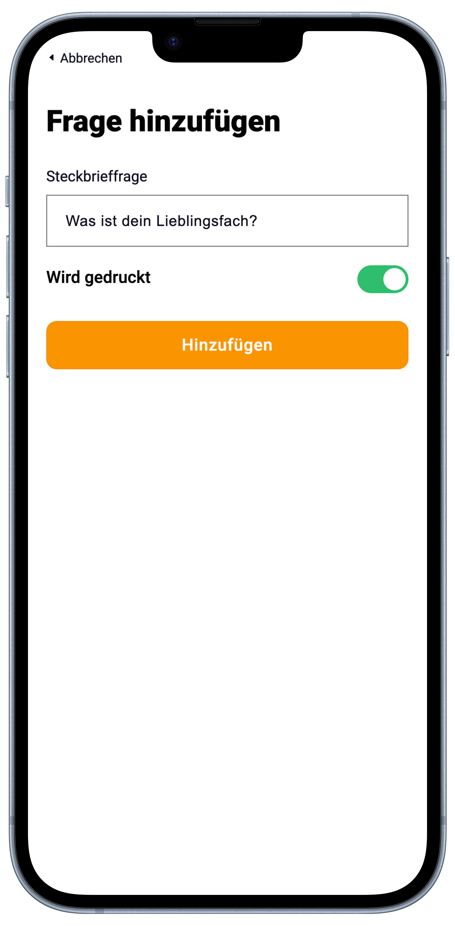 Gebe die Frage ein und klicke auf “Hinzufügen”.