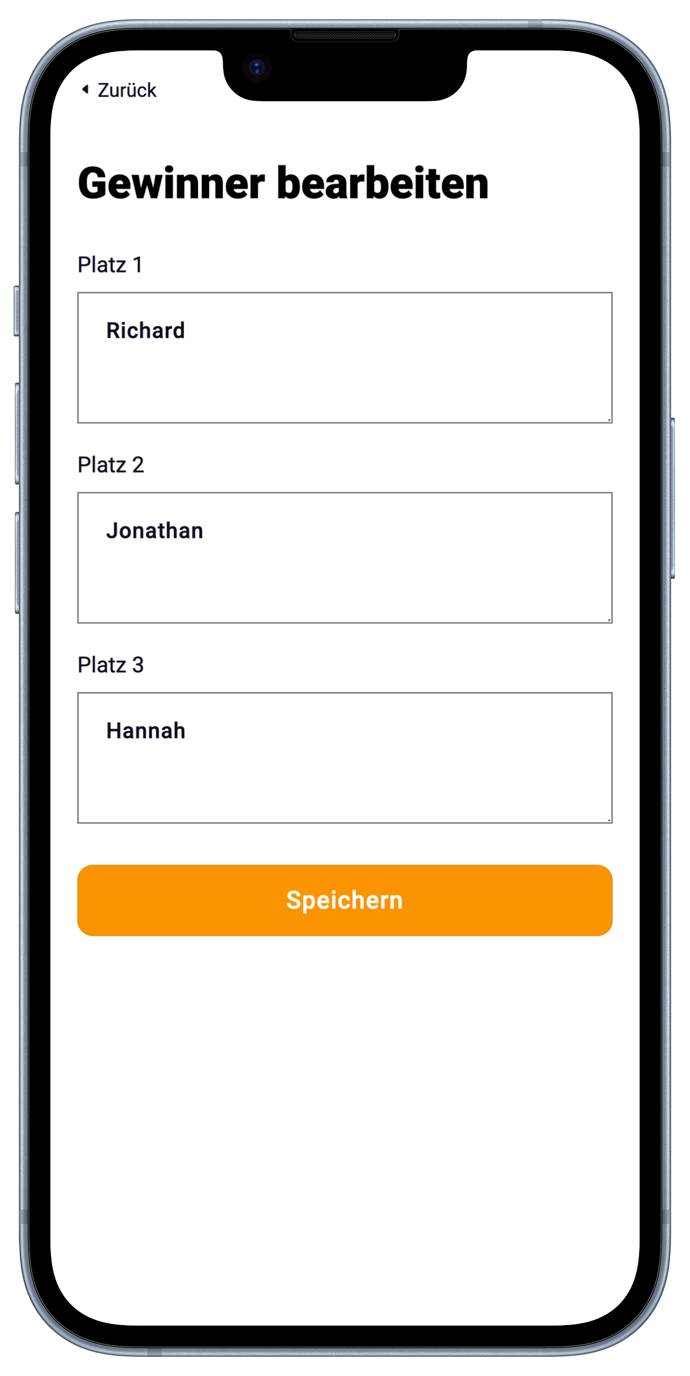 Hier kannst du die Namen dann für den 1. - 3. Platz eintragen und speichern.