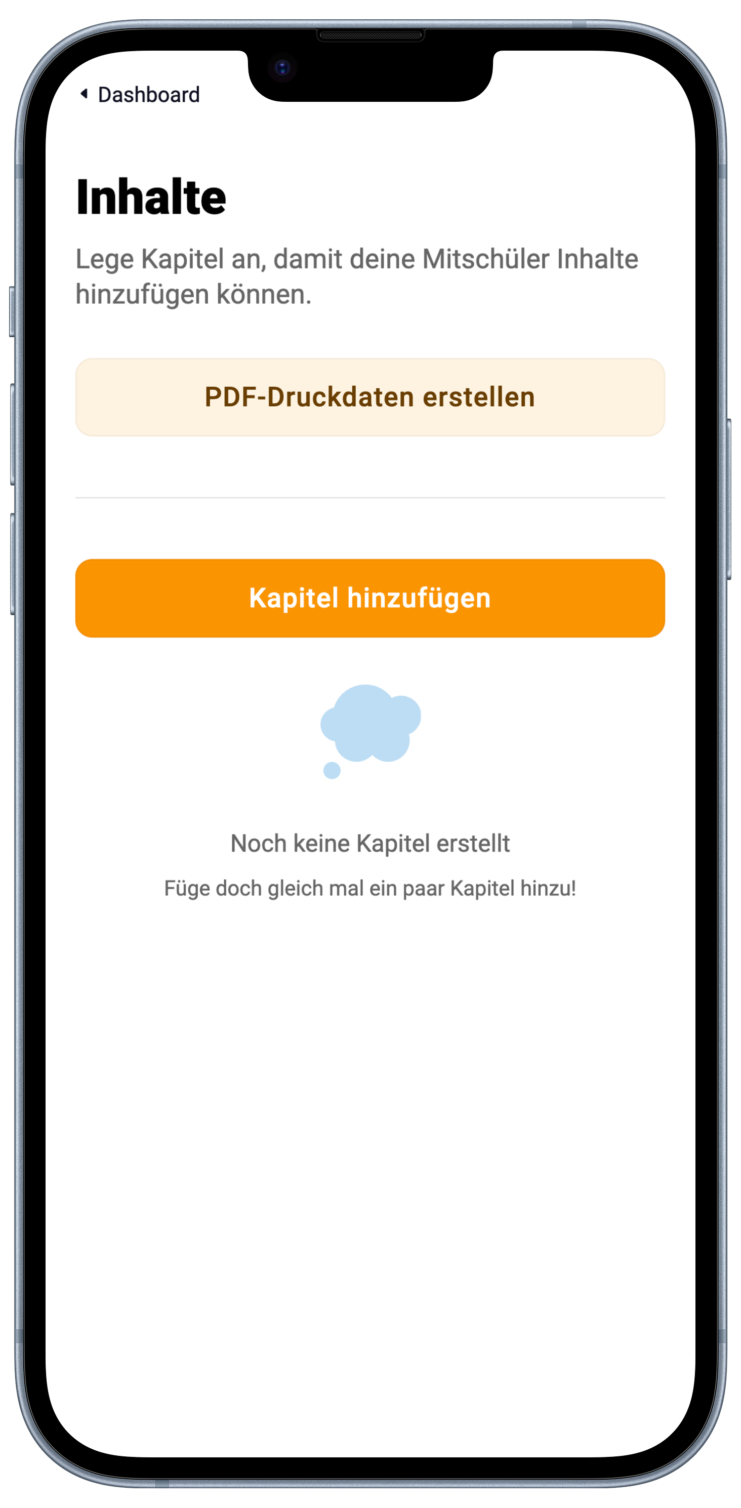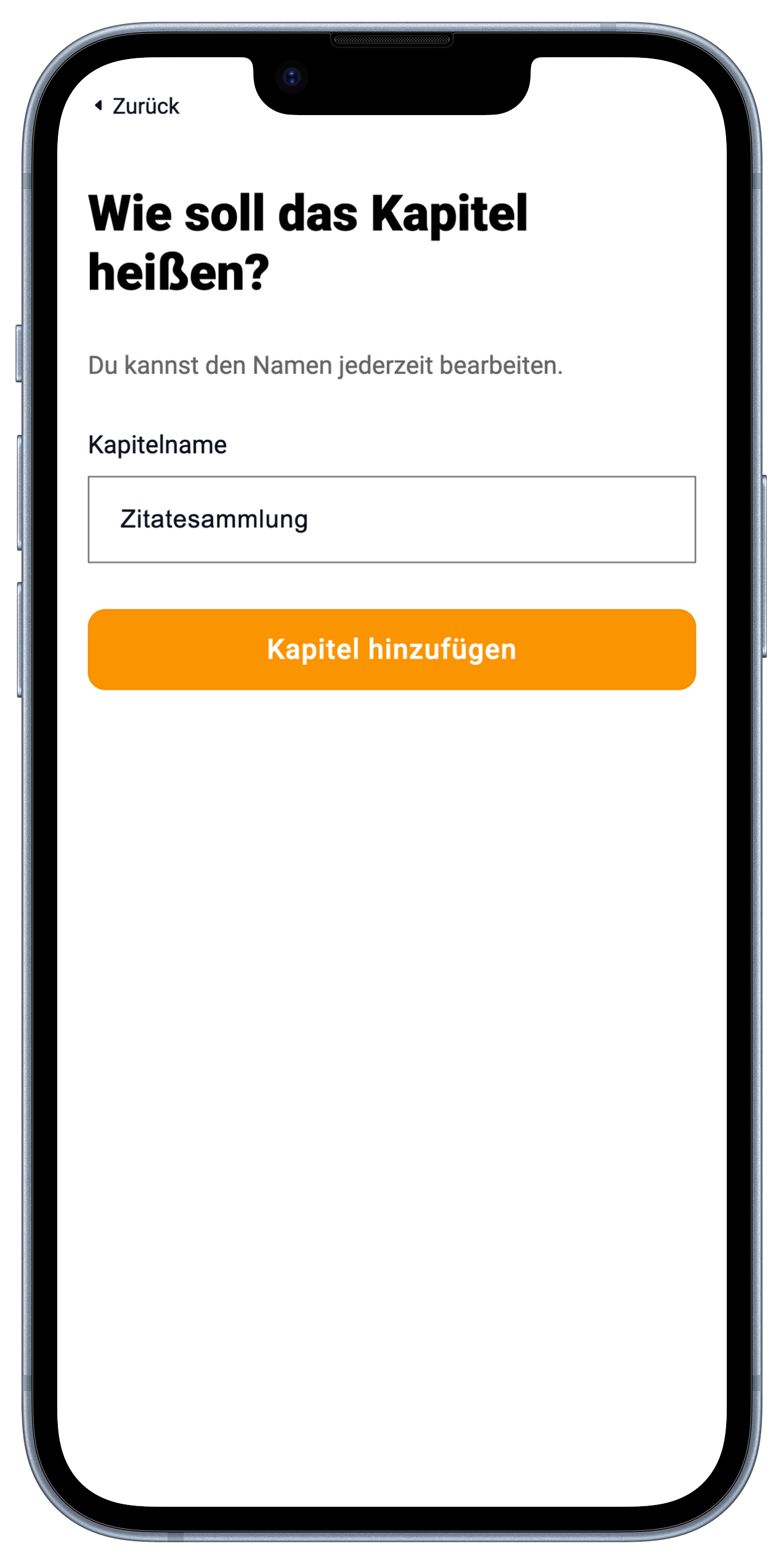 Gebe eurem Steckbrief einen Namen. Dies wird auch zugleich die Überschrift eueres Kapitels. Klicke auf “Kapitel hinzufügen”.