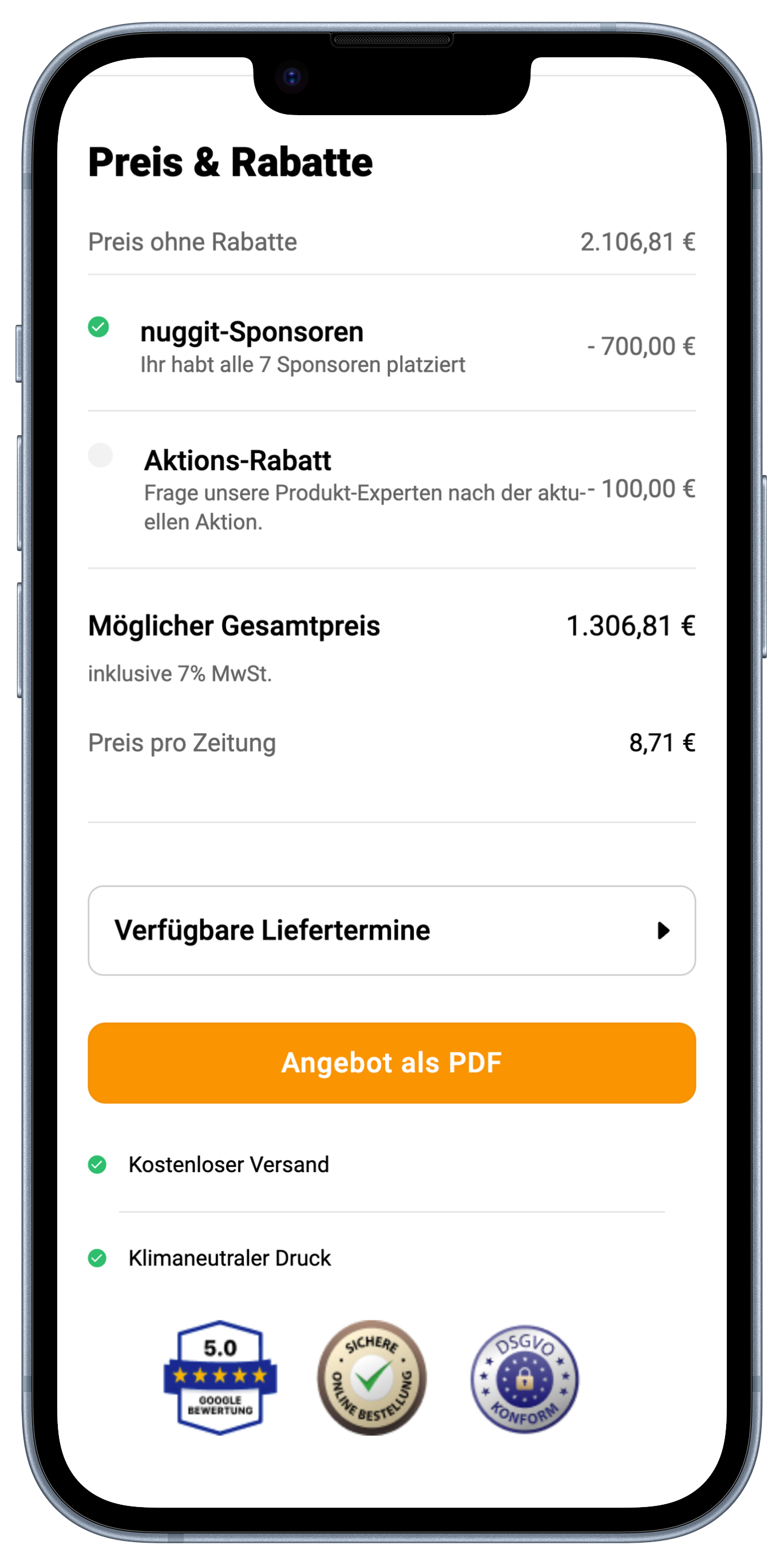 Fertig, nun hast du schon ordentlich gespart! Das ganze kannst du insgesamt bis zu 7x machen, um die vollen 700€ Rabatt zu bekommen.