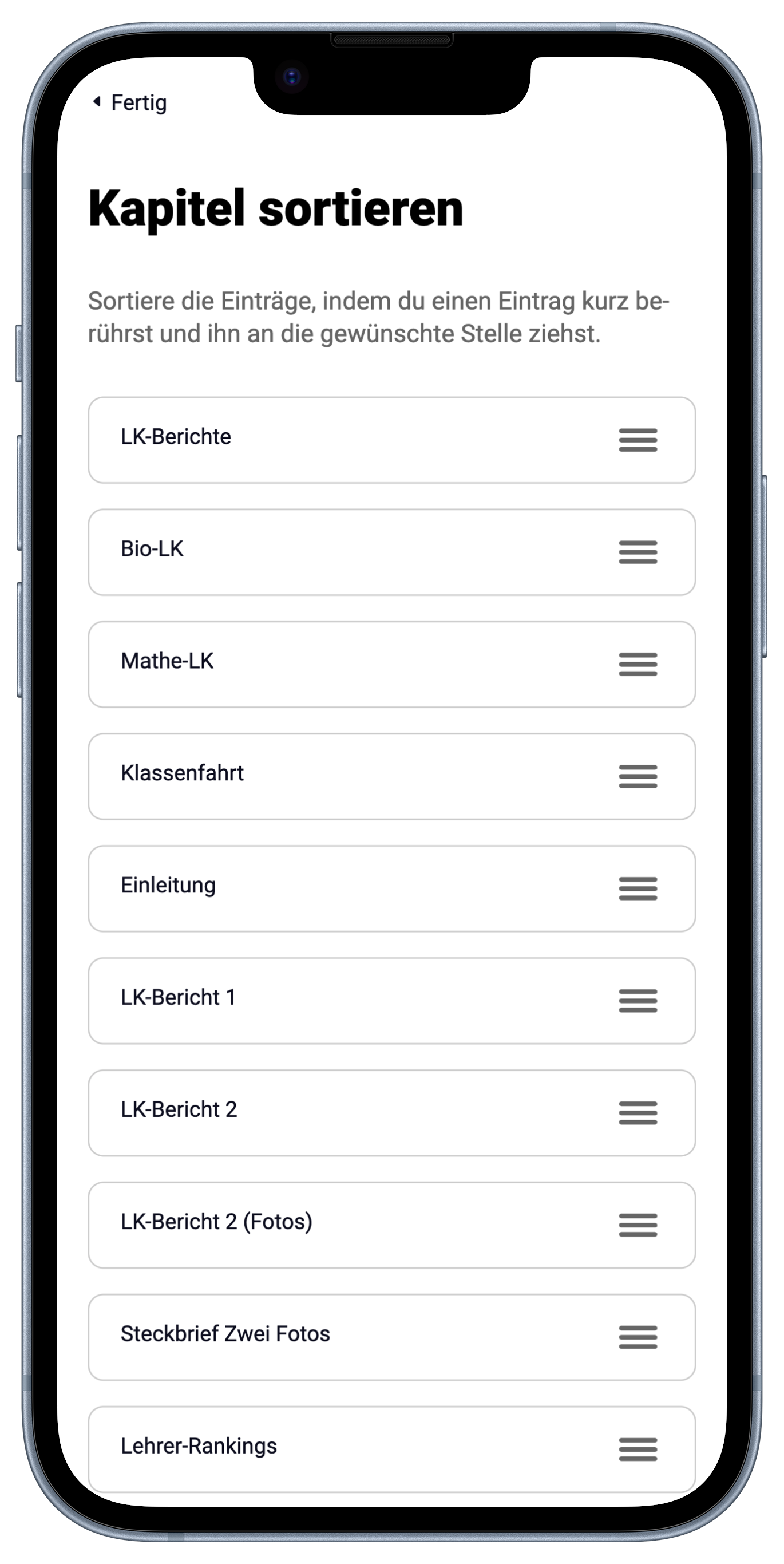 Nun kann über den Button “Reihenfolge” die Reihenfolge eurer Kapitel geändert werden.