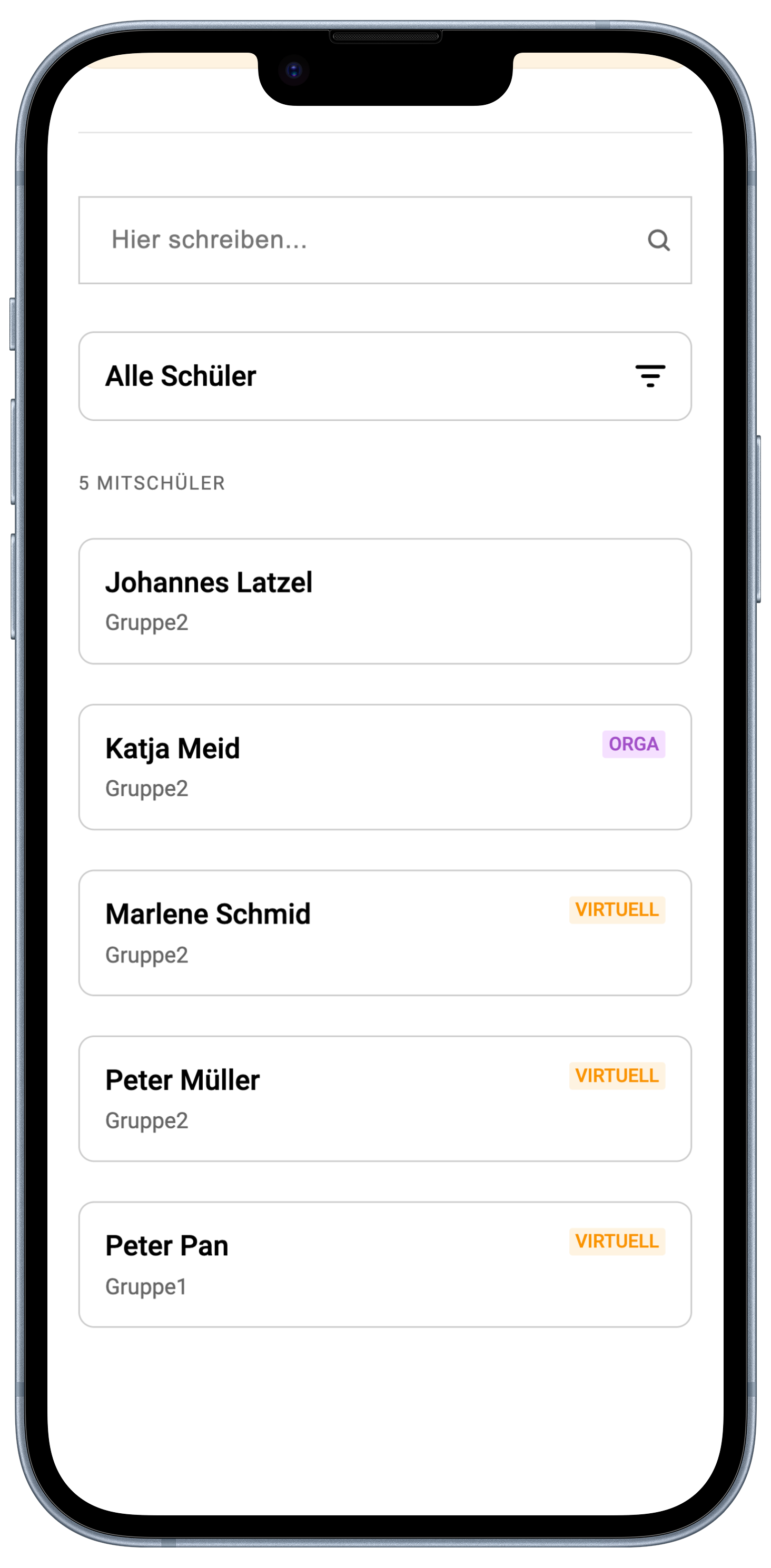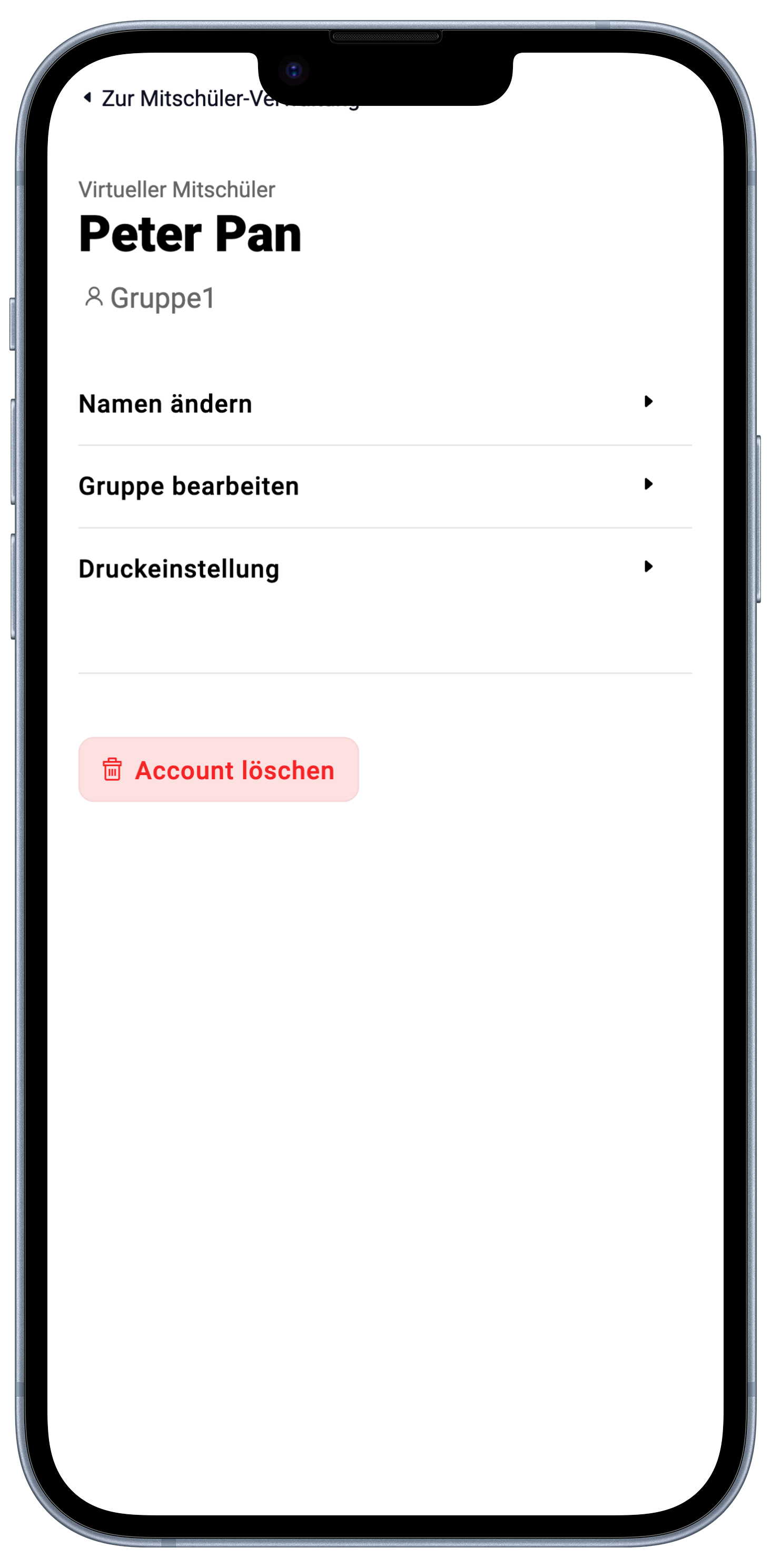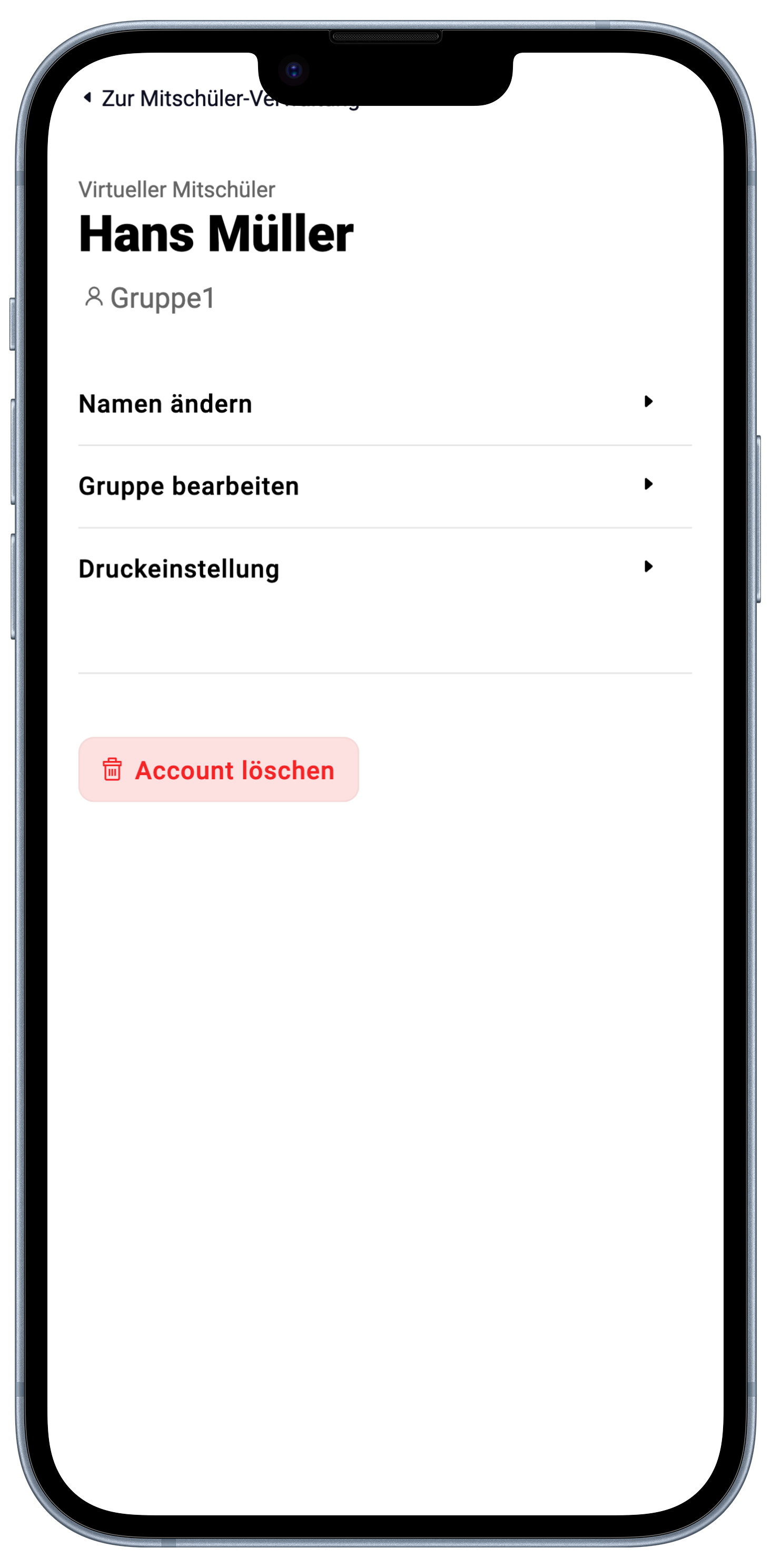 Klicke nun auf den Schüler, dessen Namen geändert werden soll.