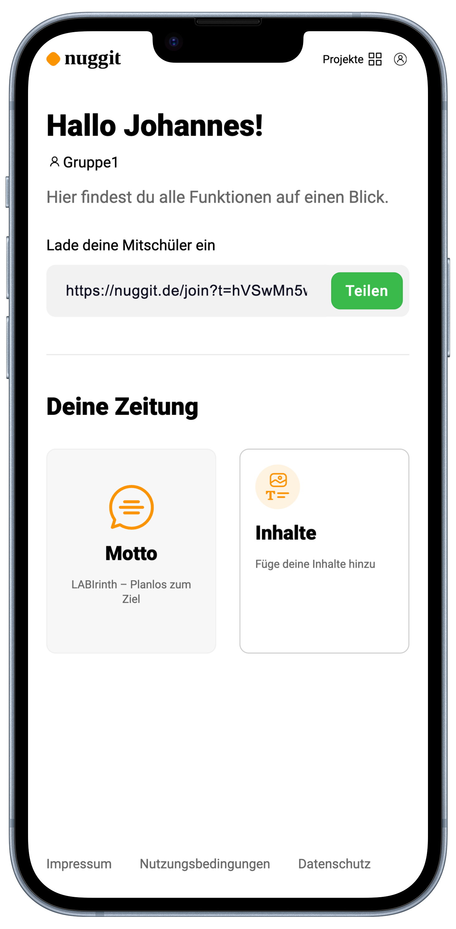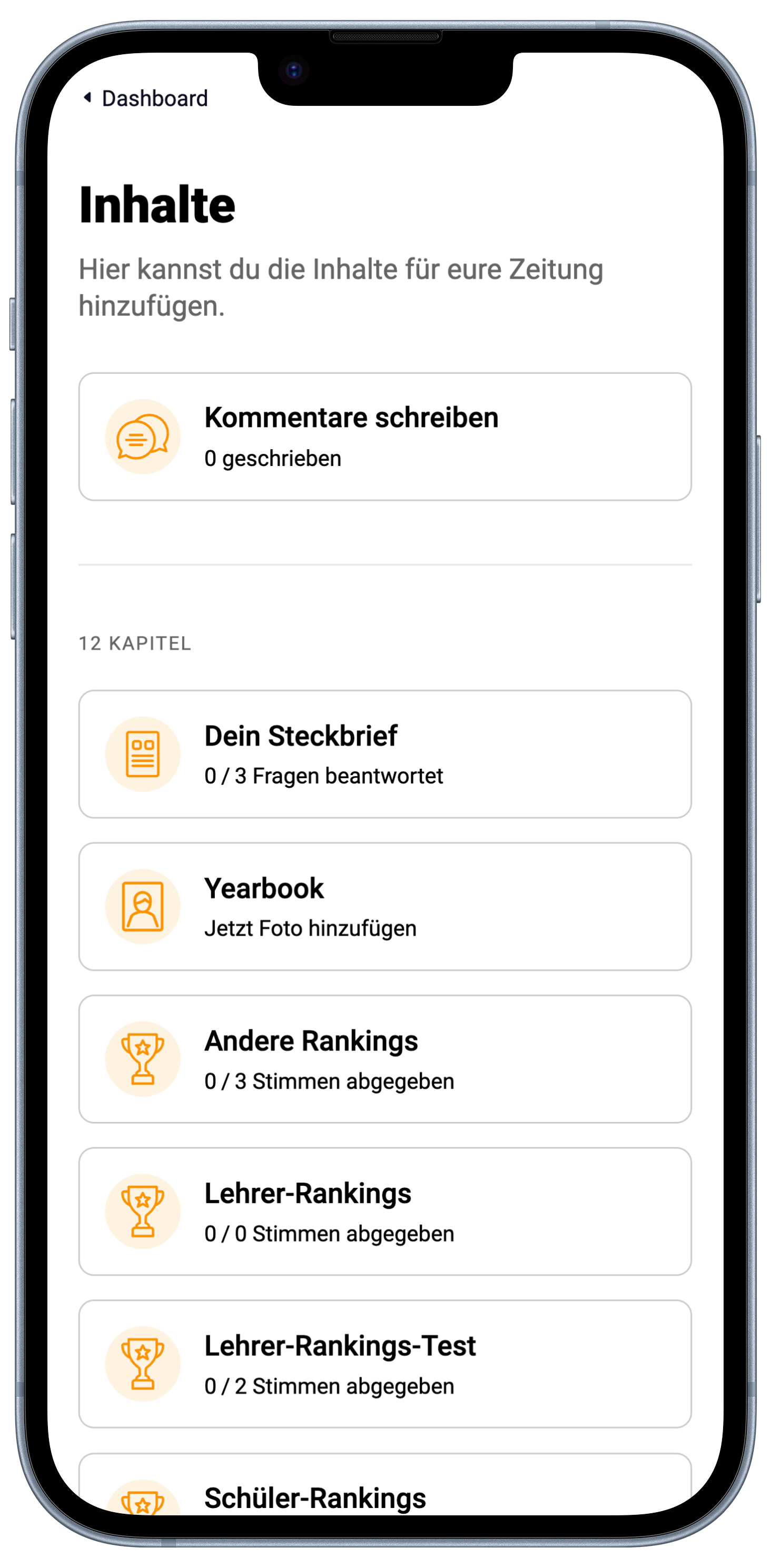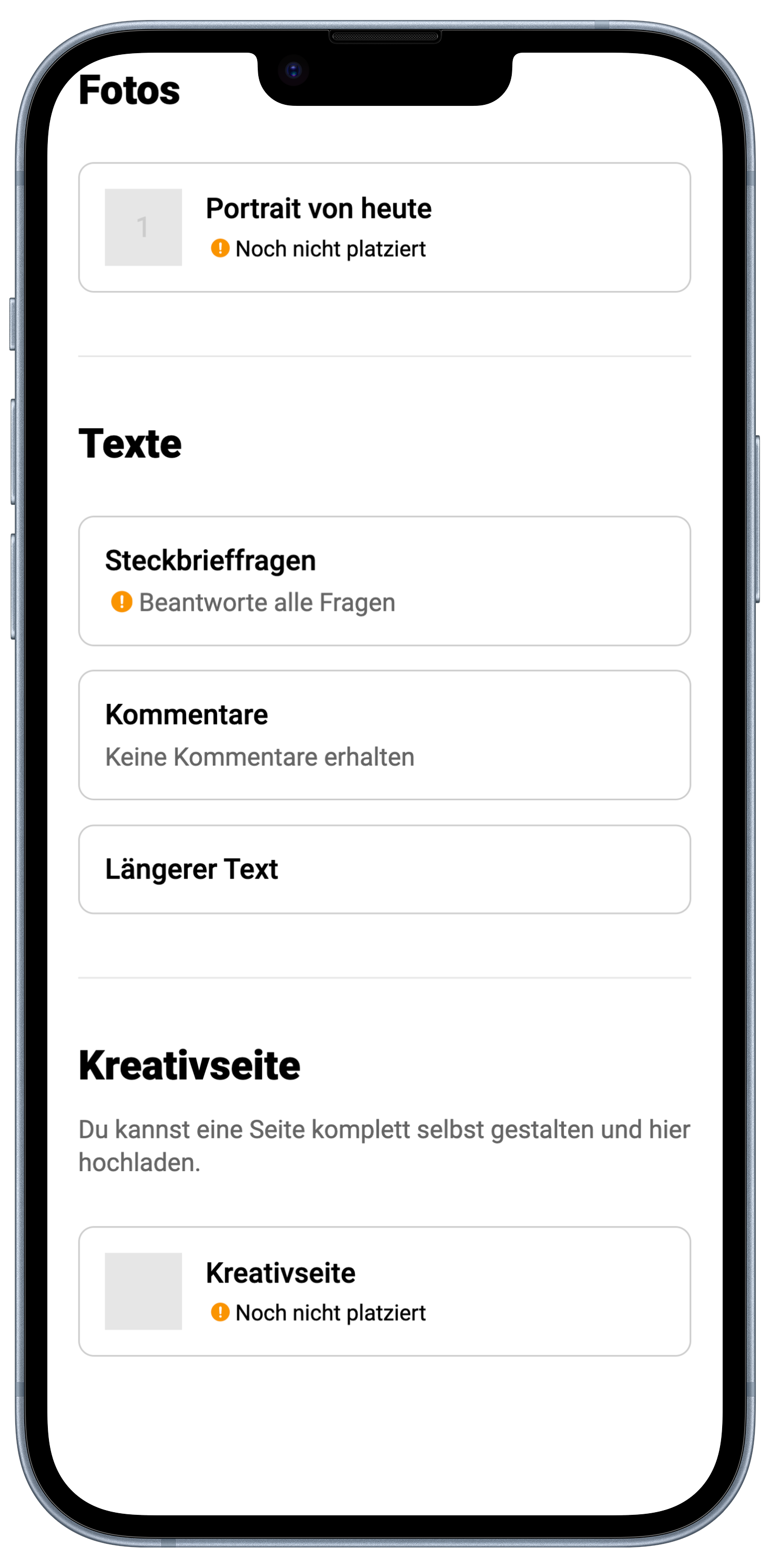 Fülle nun deinen Steckbrief aus. Weiter unten auf der Seite, befinden sich weitere Steckbriefoptionen.