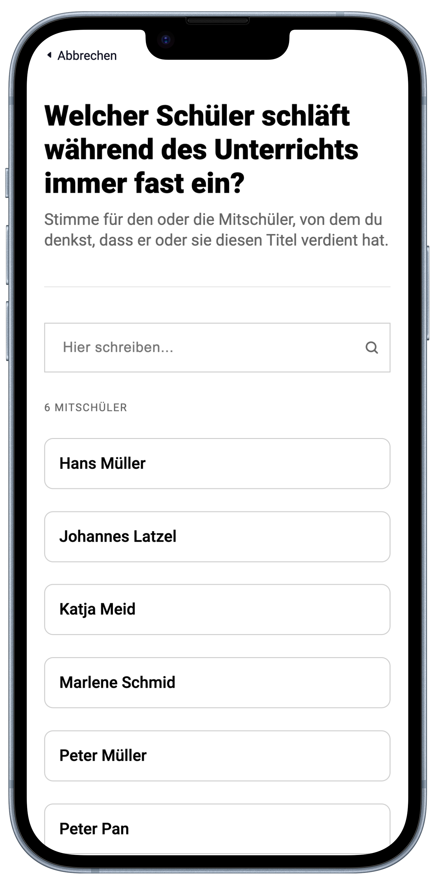 Stimme für einen Schüler ab.